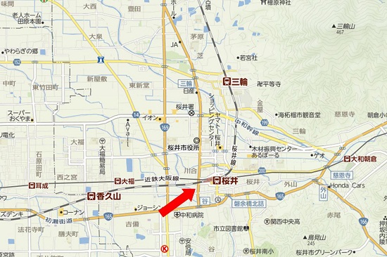 近鉄大阪線 桜井駅(区間快速・急行停車駅)南口 から西に徒歩6分